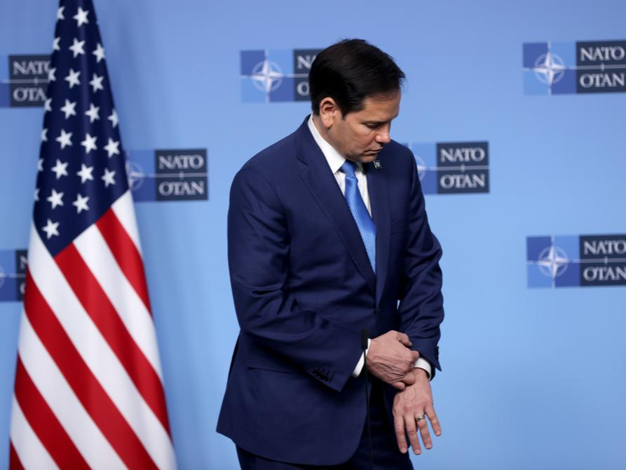 4月3日,在位于比利时布鲁塞尔的北约总部,美国国务卿鲁比奥在出席北约外长会期间与媒体见面。新华社记者赵丁喆摄
