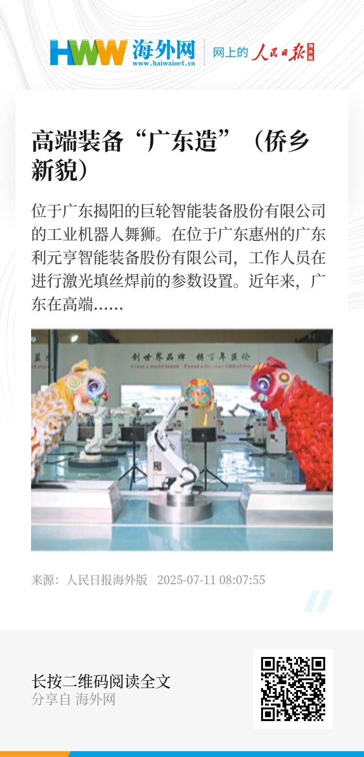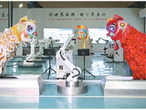 位于广东揭阳的巨轮智能装备股份有限公司的工业机器人舞狮。