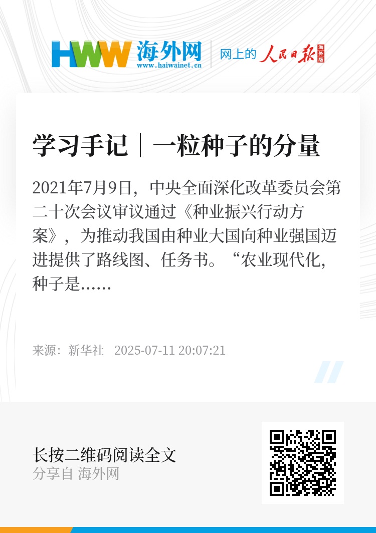 2021年7月9日,中央全面深化改革委员会第二十次会议审议通过《种业振兴行动方案》,为推动我国由种业大国向种业强国迈进提供了路线图、任务书。