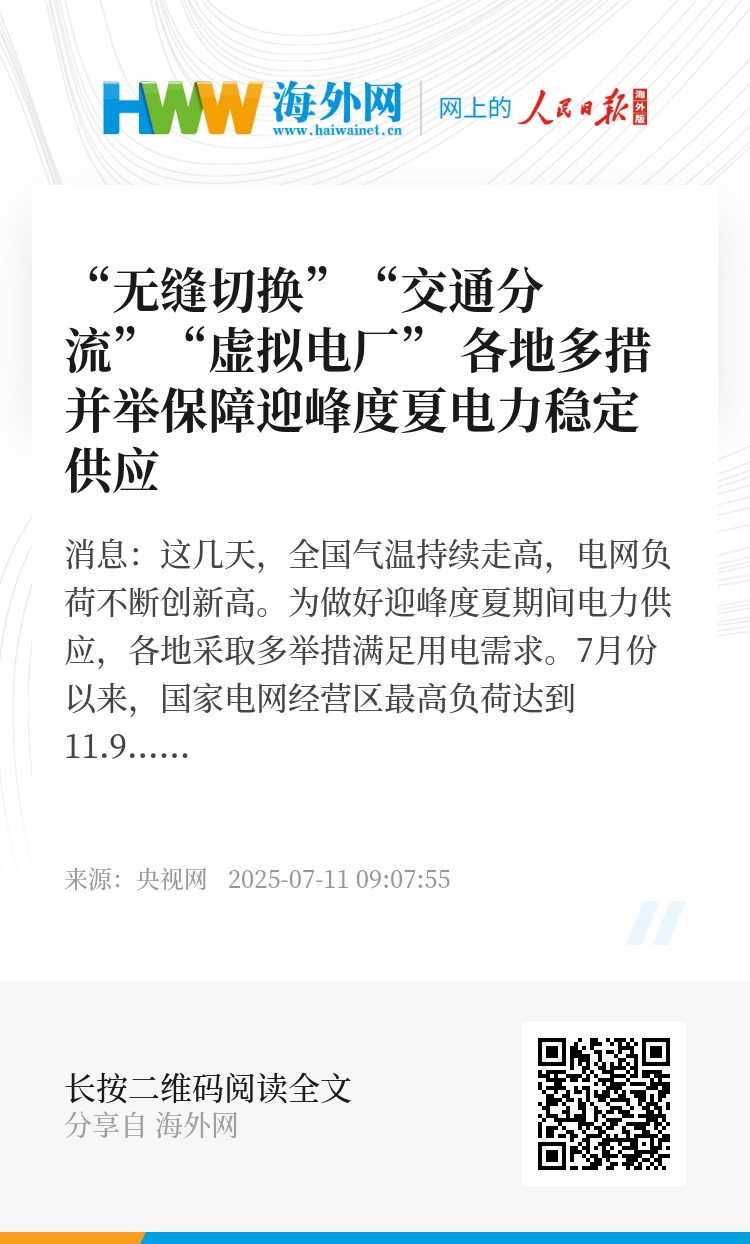 央视网消息:这几天,全国气温持续走高,电网负荷不断创新高。为做好迎峰度夏期间电力供应,各地采取多举措满足用电需求。