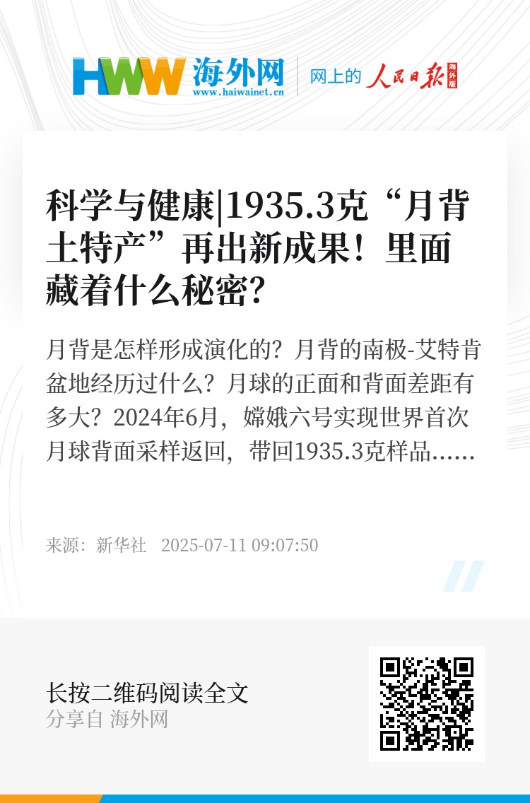 2024年6月,嫦娥六号实现世界首次月球背面采样返回,带回1935.3克样品。2025年7月9日,中国科学院发布嫦娥六号月球样品最新研究成果,四项重磅研究以封面文章形式发表于国际学术期刊《自然》,首次系统揭示南极-艾特肯大型撞击的效应,让人们得以了解月球背面的演化历史,进一步揭开月球背面的神秘面纱。