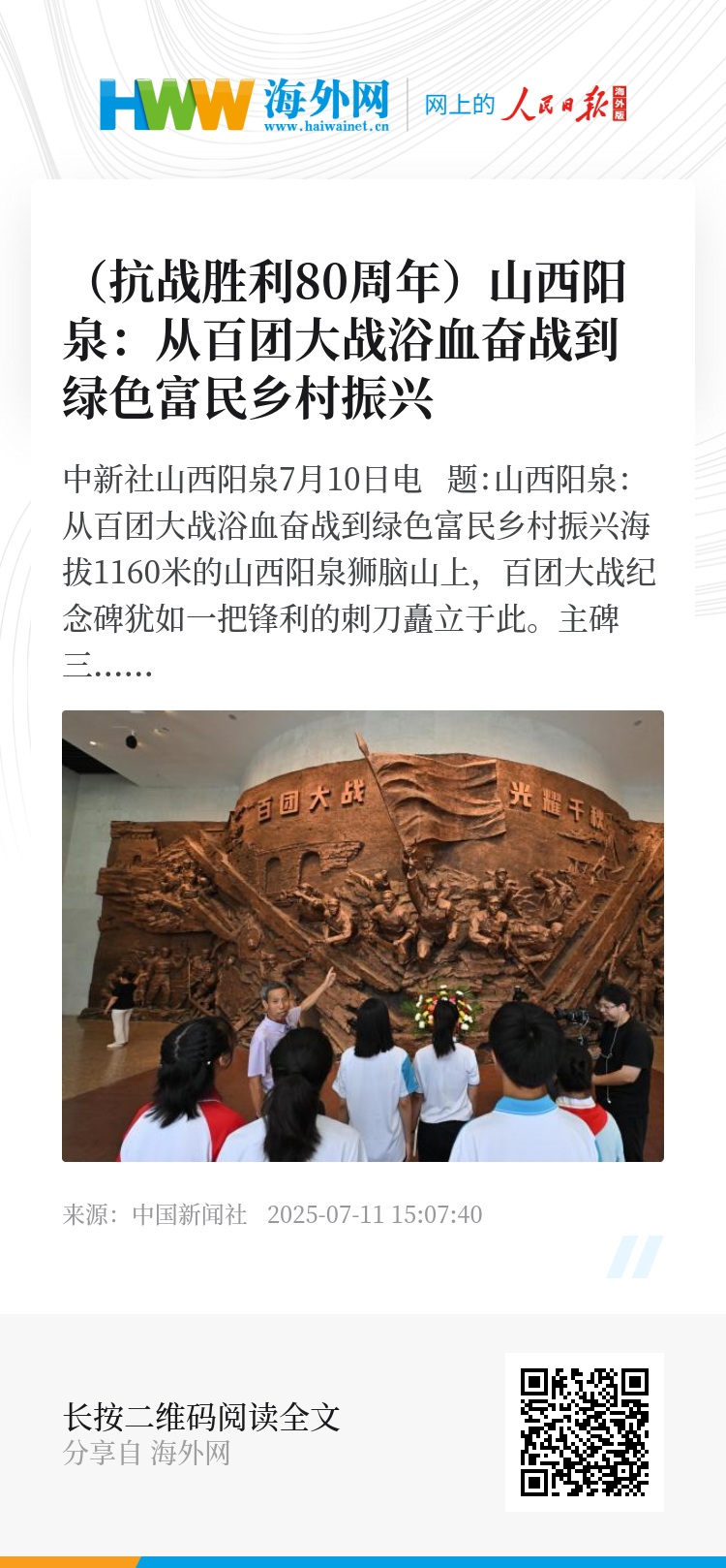 如今,在阳泉,百团大战不仅是一段历史记忆,也是当地红色旅游的重要资源。