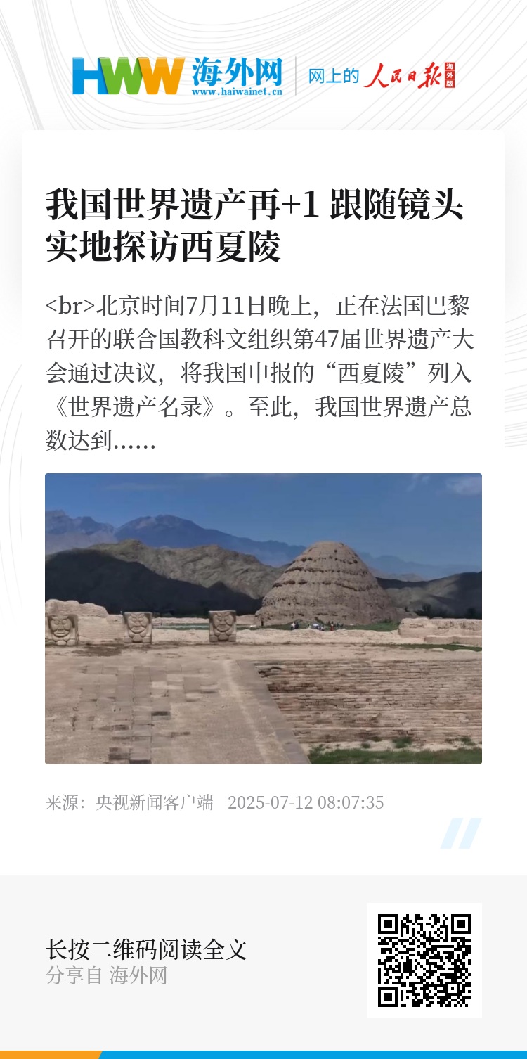 北京时间7月11日晚上,正在法国巴黎召开的联合国教科文组织第47届世界遗产大会通过决议,将我国申报的“西夏陵”列入《世界遗产名录》。至此,我国世界遗产总数达到60项,保持了世界前列的位序。