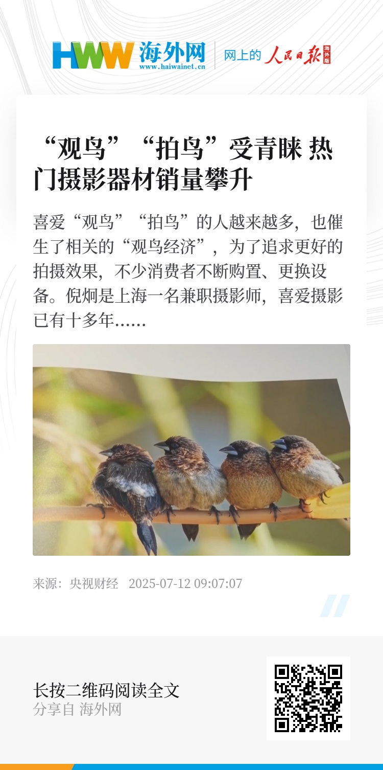 喜爱“观鸟”“拍鸟”的人越来越多,也催生了相关的“观鸟经济”,为了追求更好的拍摄效果,不少消费者不断购置、更换设备。