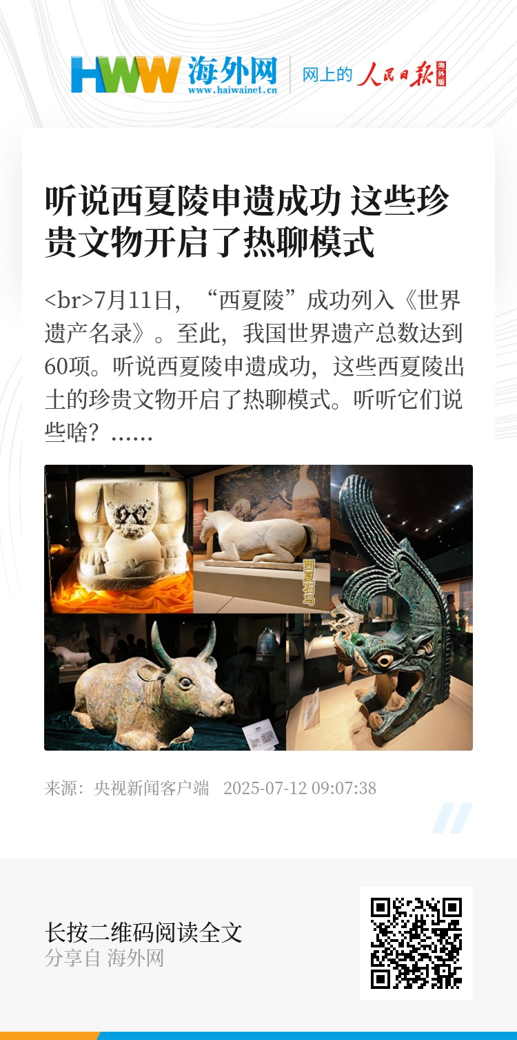 7月11日,“西夏陵”成功列入《世界遗产名录》。至此,我国世界遗产总数达到60项。