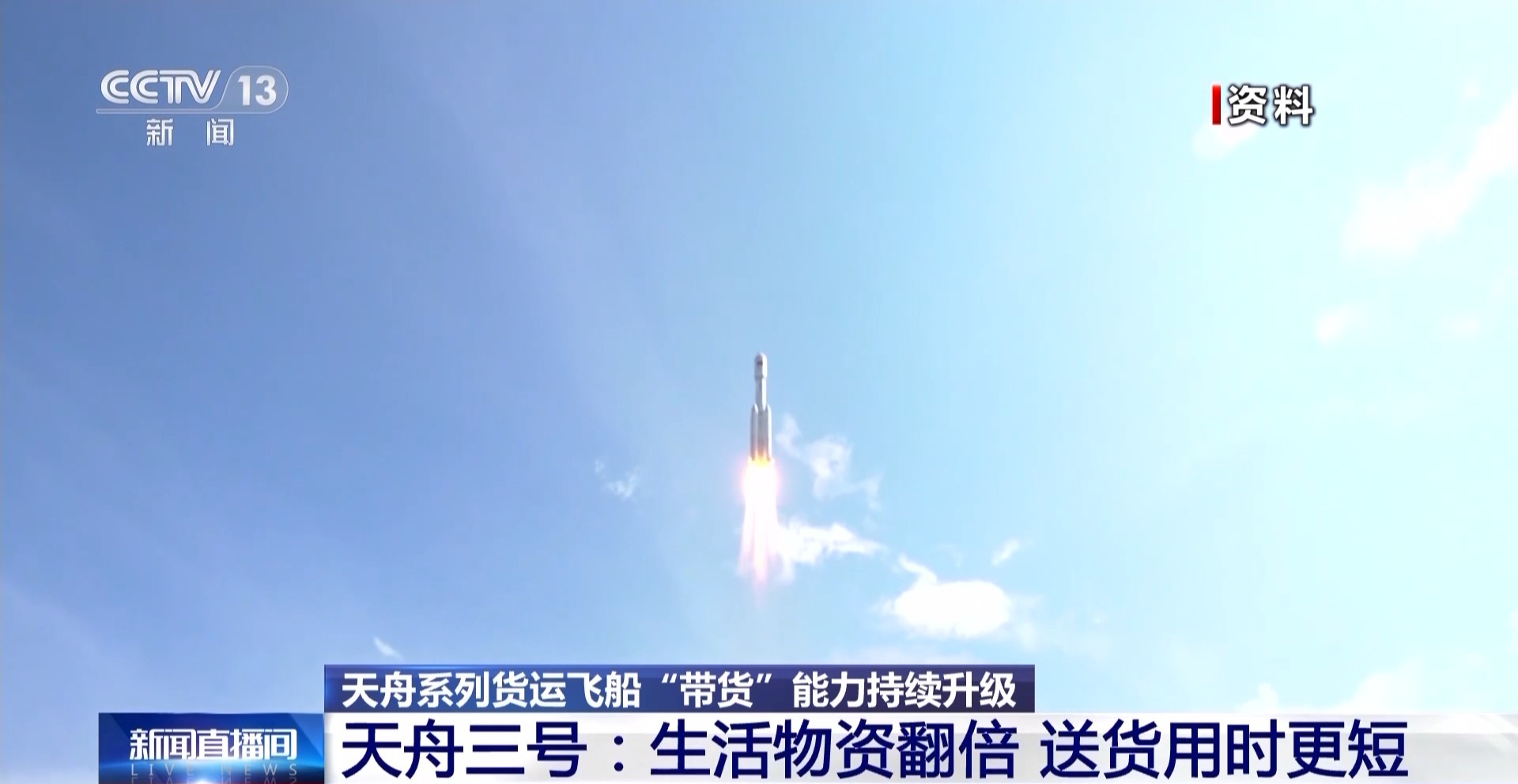 2023年5月10日,天舟六号货运飞船直上云霄。天舟六号是改进型全密封货运飞船的首发船,是世界现役货物运输能力最大、货运效率最高、在轨支持能力最全的货运飞船。研制人员在它内部结构上进行了改进,使得天舟货运飞船的载货能力从过去的6.9吨提高到了7.4吨,发射频次由2年4发降低至2年3发。