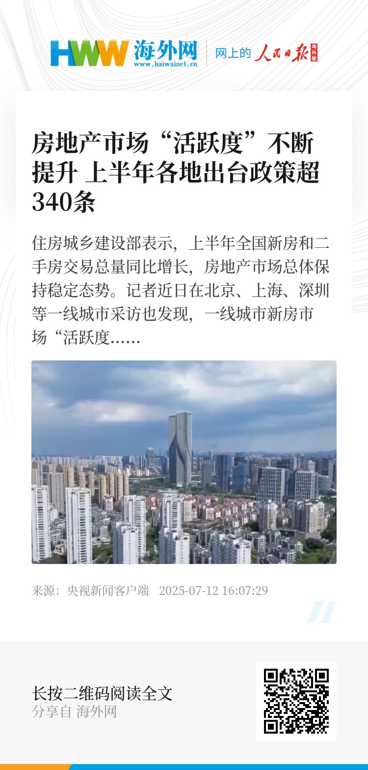 上海易居房地产研究院副院长 严跃进:2025年上半年房地产市场表现积极向好,既说明一系列购房政策的效应积极释放,也说明购房需求和动力充足。同时也为下半年楼市向好发展创造了非常好的基础,且供求关系经历了一轮充分有效的调整,将更加有效促进下半年楼市的向好发展。