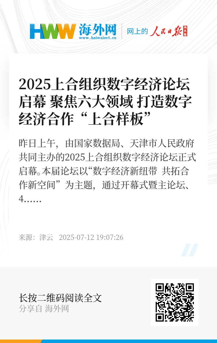 昨日上午,由国家数据局、天津市人民政府共同主办的2025上合组织数字经济论坛正式启幕。本届论坛以“数字经济新纽带 共拓合作新空间”为主题,通过开幕式暨主论坛、4个主题论坛以及相关体验活动,聚焦上合组织各国共同关注的数据流通交易、产业数字化转型、数字基础设施建设、人工智能应用、智慧城市、数字人才培养培训等领域,推动重点企业和地区开展数字经济项目洽谈和落地。