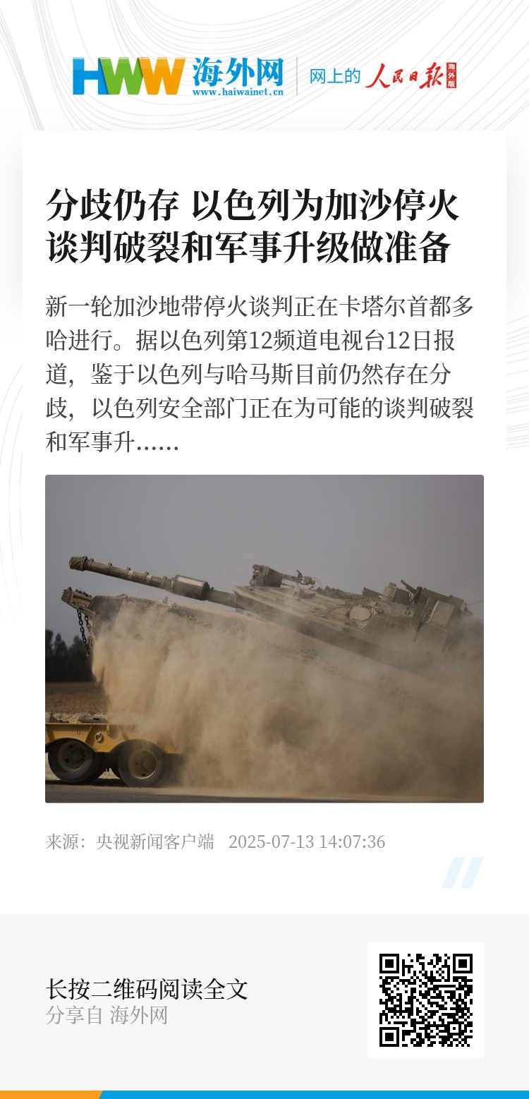 新一轮加沙地带停火谈判正在卡塔尔首都多哈进行。据以色列第12频道电视台12日报道,鉴于以色列与哈马斯目前仍然存在分歧,以色列安全部门正在为可能的谈判破裂和军事升级做准备。