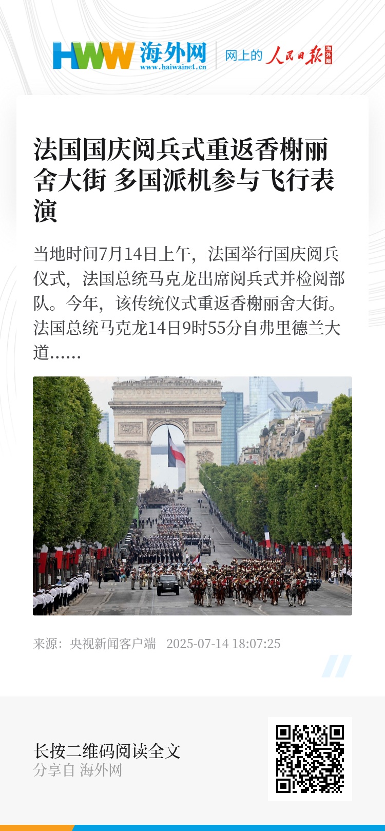 7月14日是法国国庆日,又称“巴士底日”,旨在纪念法国首都巴黎民众1789年7月14日攻占象征封建统治的巴士底狱,拉开了法国大革命的序幕。(总台记者 马瑾瑾)