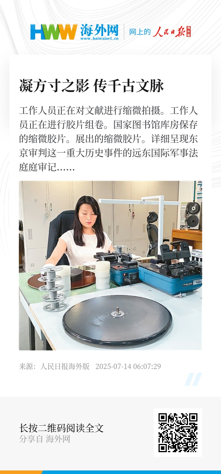 详细呈现东京审判这一重大历史事件的远东国际军事法庭庭审记录、《永乐大典》和“敦煌遗书”等国宝级典籍、民国时期的禁烟史料和黄河治理记录、丰富多样的少数民族文献……当众多珍贵文献被“浓缩”在轻薄的胶片上,沉甸甸的文化根脉和厚重的历史记忆也被一并留存。