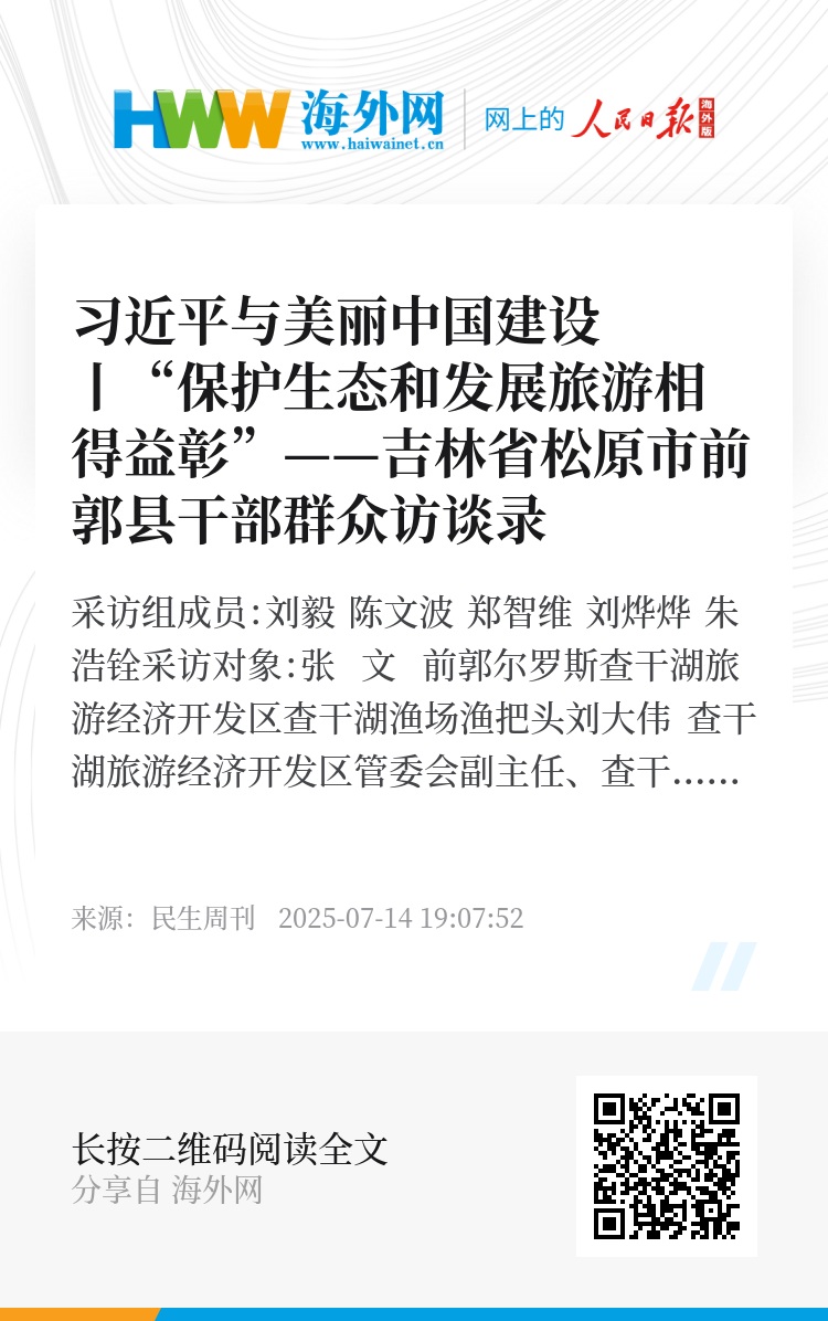原标题 | 《“保护生态和发展旅游相得益彰”——吉林省松原市前郭县干部群众访谈录》