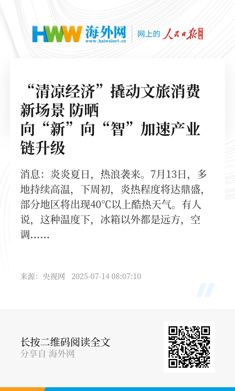 除了旅游消费,盛夏时节,防晒产品也迎来销售旺季。在福建晋江,这里的多家服装生产或纺织面料企业生产的凉感、速干、驱蚊、防晒等功能性面料订单火爆,备受市场青睐。