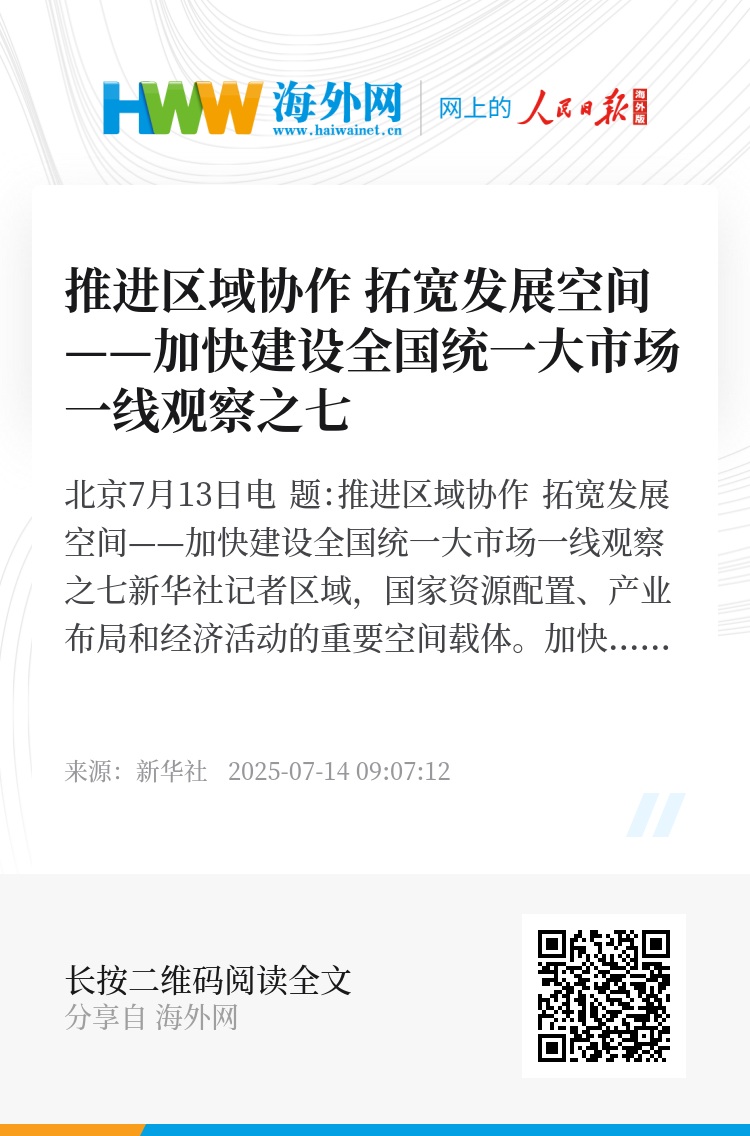 新华社北京7月13日电 题:推进区域协作 拓宽发展空间——加快建设全国统一大市场一线观察之七