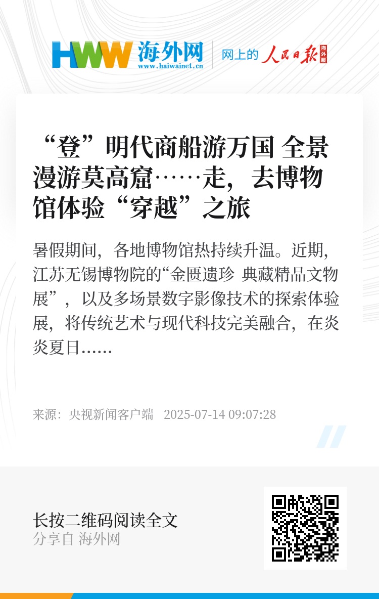 暑假期间,各地博物馆热持续升温。近期,江苏无锡博物院的“金匮遗珍 典藏精品文物展”,以及多场景数字影像技术的探索体验展,将传统艺术与现代科技完美融合,在炎炎夏日,吸引游客前往感受文化瑰宝的独特魅力。