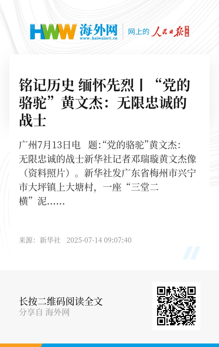 新华社广州7月13日电 题:“党的骆驼”黄文杰:无限忠诚的战士