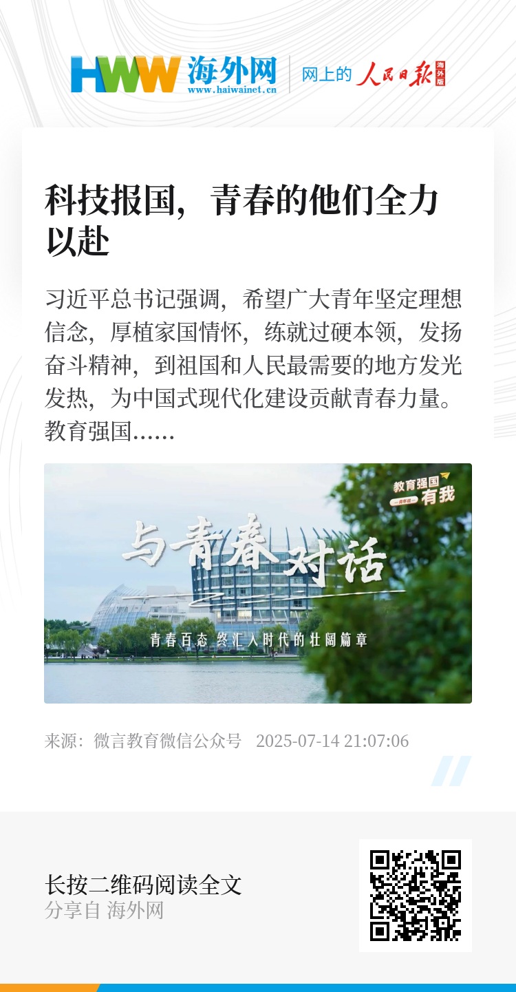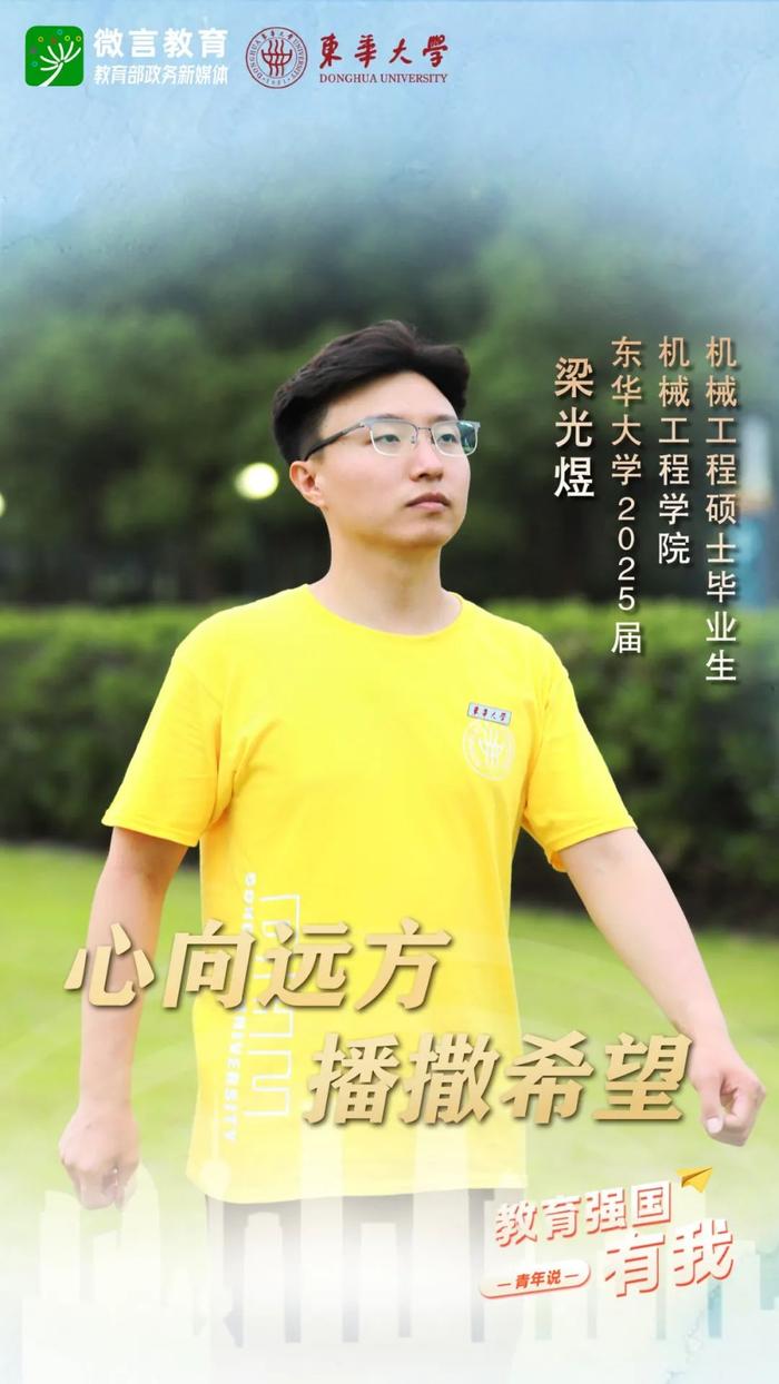 习近平总书记强调,希望广大青年坚定理想信念,厚植家国情怀,练就过硬本领,发扬奋斗精神,到祖国和人民最需要的地方发光发热,为中国式现代化建设贡献青春力量。教育强国建设,青年何为?教育部政务新媒体推出“教育强国,有我!”网络主题宣传活动之“青年说(报国篇)”系列,展现青年学子将个人理想融入国家发展的青春担当。今天,跟教育小微通过1个视频和1组海报,一起来看东华大学青年学子与青春对话——