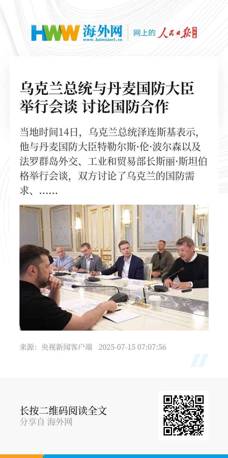 泽连斯基表示,会上就 “丹麦模式” 的进一步发展进行了讨论,特别是增加投资和在丹麦开设乌克兰的生产基地。(总台记者 董薇)