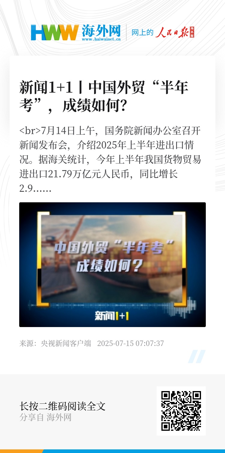 《新闻1+1》关注:中国外贸“半年考”,成绩如何?
