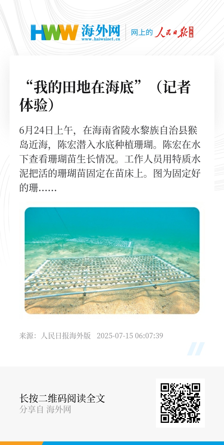 “现在政府支持力度大,社会对珊瑚保护有共识,我有信心把珊瑚继续‘种’下去。”陈宏说。(本报记者 杨俊峰文/图)