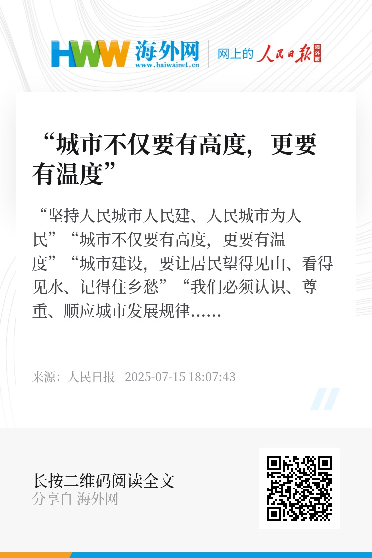 “注重延续城市历史文脉,像对待‘老人’一样尊重和善待城市中的老建筑”;