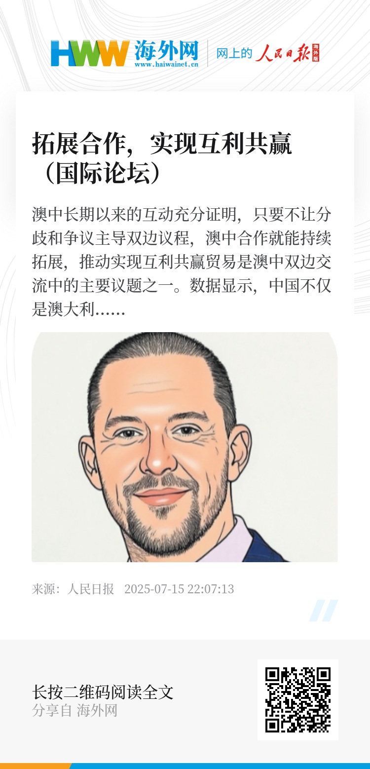 澳中长期以来的互动充分证明,只要不让分歧和争议主导双边议程,澳中合作就能持续拓展,推动实现互利共赢