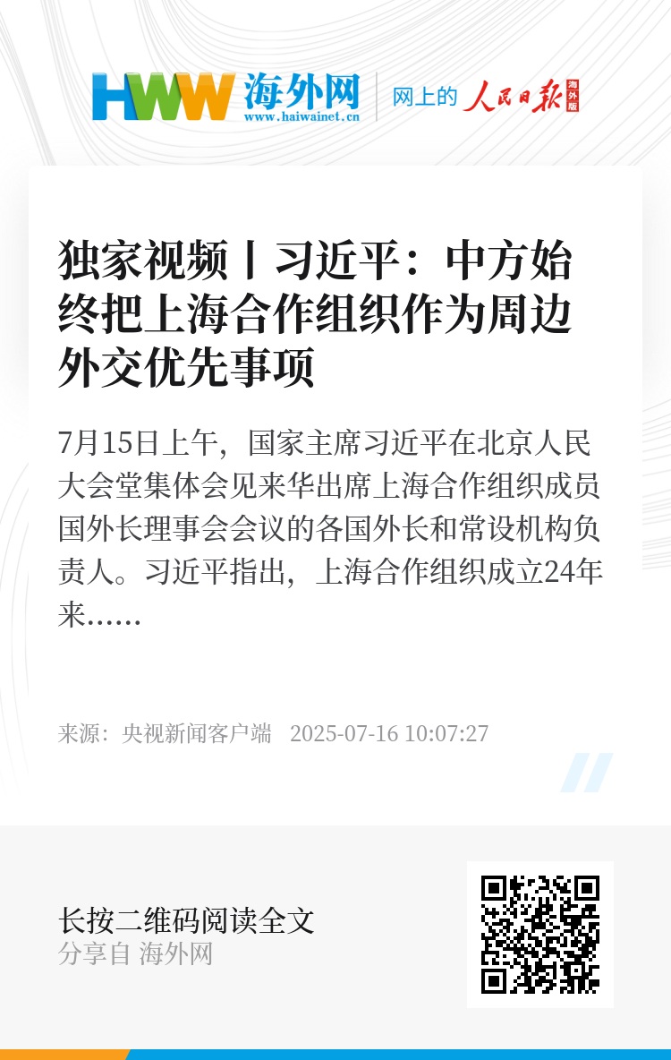 习近平指出,上海合作组织成立24年来,始终秉持“上海精神”,不断成熟壮大,焕发出强大生命力。成员国政治互信不断加深,各领域合作结出硕果,成功走出了一条顺应时代潮流、契合各方需求的区域合作道路,树立起新型国际关系的典范。中方始终把上海合作组织作为周边外交优先事项,致力于把上海合作组织做实做强,维护好地区安全和稳定,促进成员国发展繁荣,打造紧密的命运共同体。