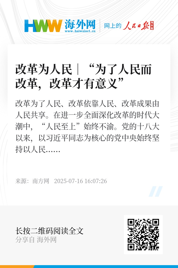 这是坚持以人民为中心的生动诠释。“没有人民支持和参与,任何改革都不可能取得成功。”进一步全面深化改革,必须紧紧依靠人民,才能凝聚起强大共识与力量,攻坚克难,行稳致远。