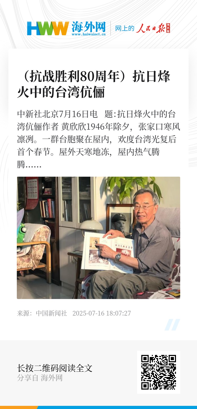 中新社北京7月16日电 题:抗日烽火中的台湾伉俪