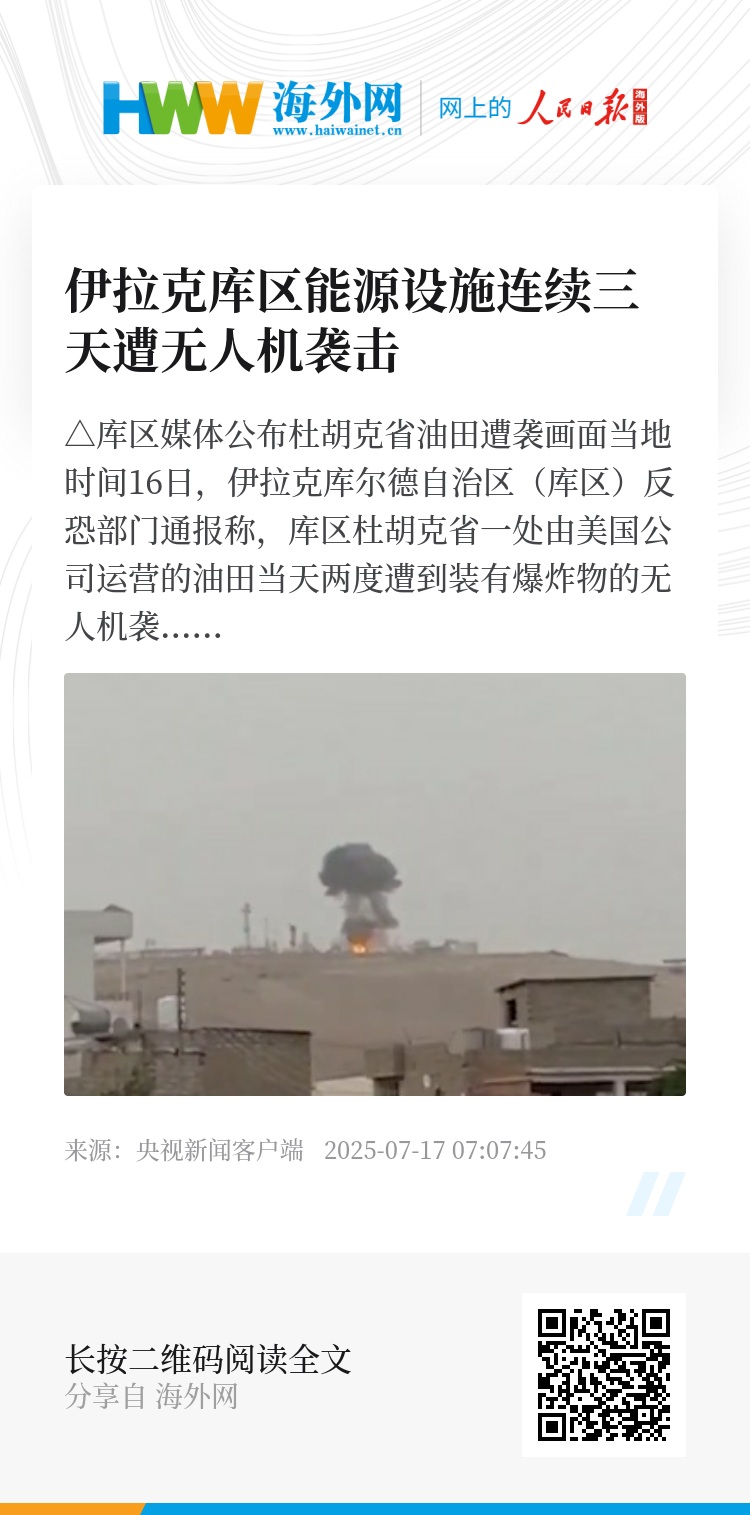据悉,当天杜胡克省内其他油田也发生了类似的无人机袭击事件。这已是库区能源设施连续第三天遭到此类攻击。库区政府呼吁伊拉克中央政府采取紧急措施,防止袭击进一步升级,并追查相关责任方。