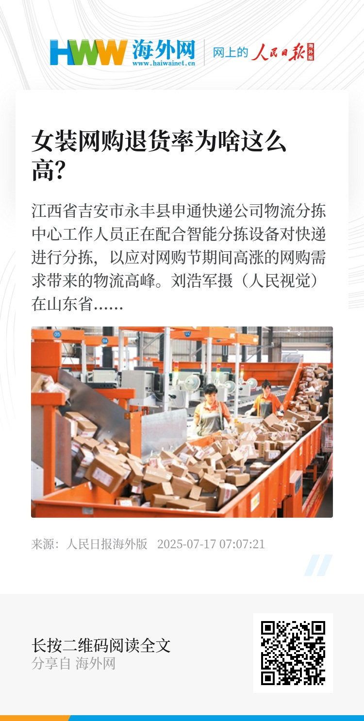 记者注意到,针对女装退货率高问题,电商平台正在积极采取举措。天猫服饰有关负责人表示,针对尺码问题,平台通过大数据模型能力,提高用户导购体验、理解消费者身形,为其做精准推荐。平台与一些头部商家合作后,退货率降了2至3个点。品质层面,平台通过品质鉴定,以“打标”的方式让消费者买得安心。价格方面,通过预售、买贵必赔的体验,消除消费者顾虑。