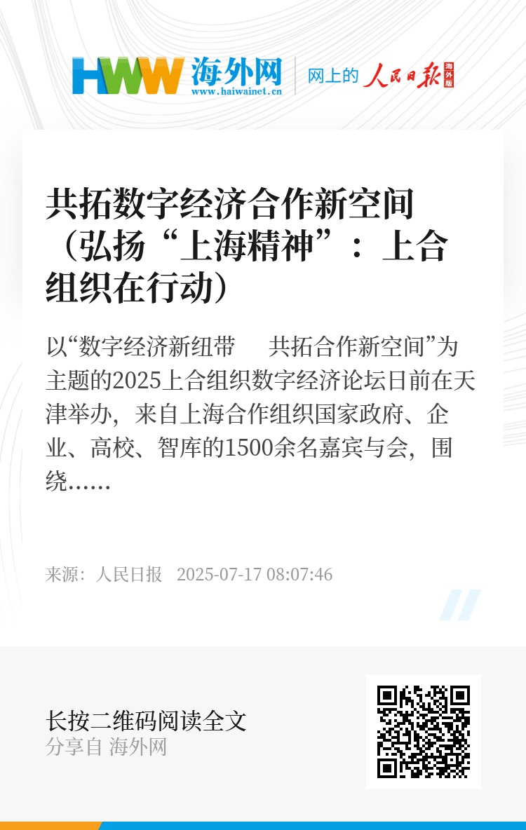 以“数字经济新纽带 共拓合作新空间”为主题的2025上合组织数字经济论坛日前在天津举办,来自上海合作组织国家政府、企业、高校、智库的1500余名嘉宾与会,围绕数字基础设施建设、数据流通交易、人工智能应用、智慧城市建设、数字人才培养培训等领域的发展与合作进行交流,助力上海合作组织可持续发展。