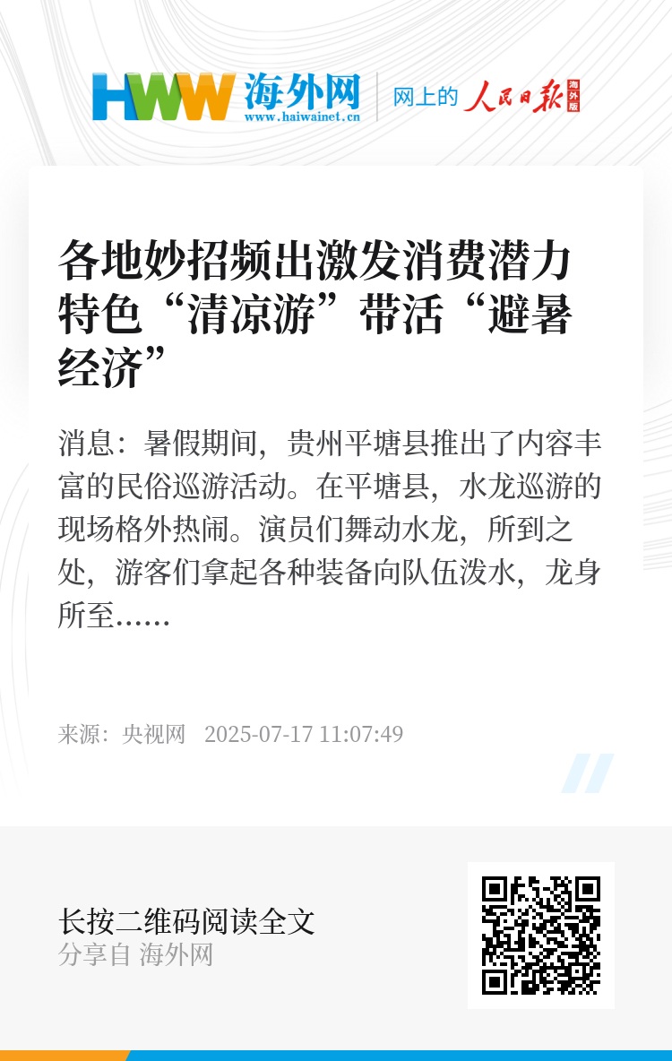当前正值暑期旅游旺季,在浙江、湖北等地,各类避暑旅游产品受到游客欢迎,助力“清凉经济”持续升温。
