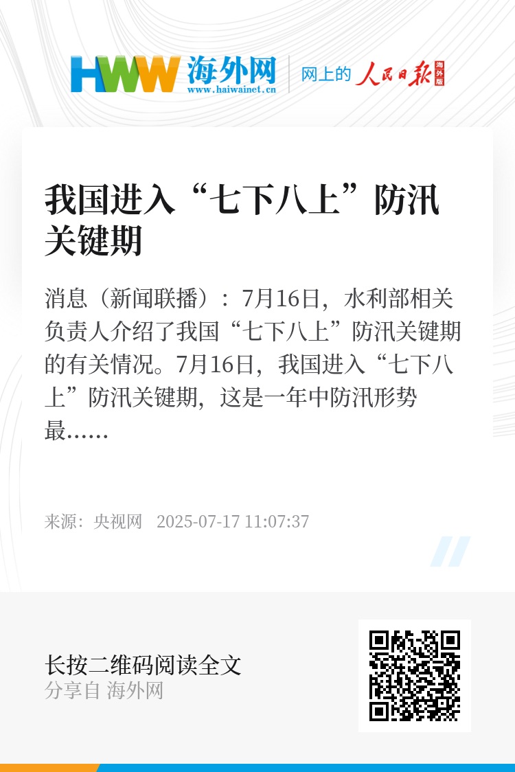 央视网消息(新闻联播):7月16日,水利部相关负责人介绍了我国“七下八上”防汛关键期的有关情况。