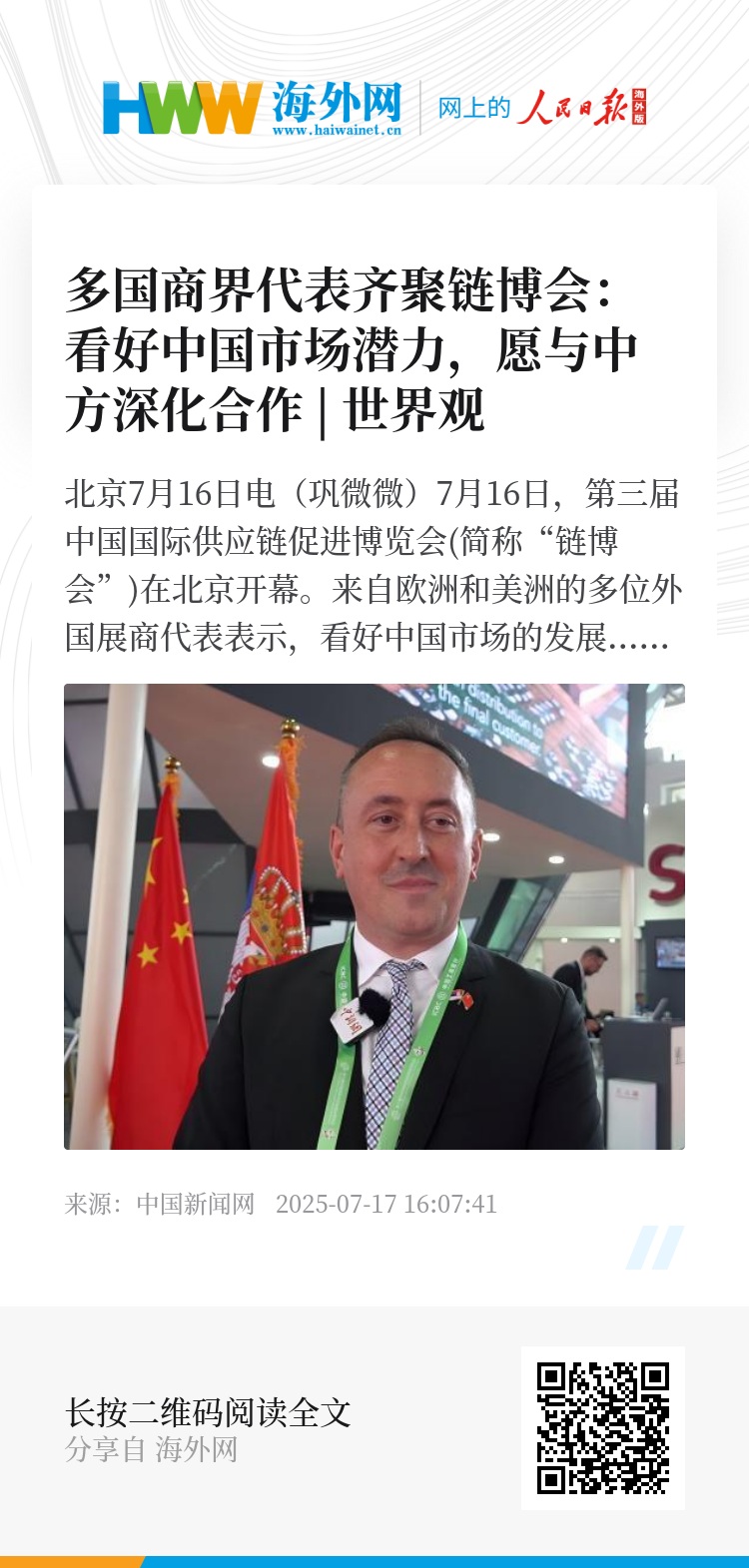 尼科利奇强调,塞中良好的政治关系为双方的贸易往来创造了良好的环境。中国是世界最大的市场之一,此次参展将助力塞企触达庞大的中国消费者群体。