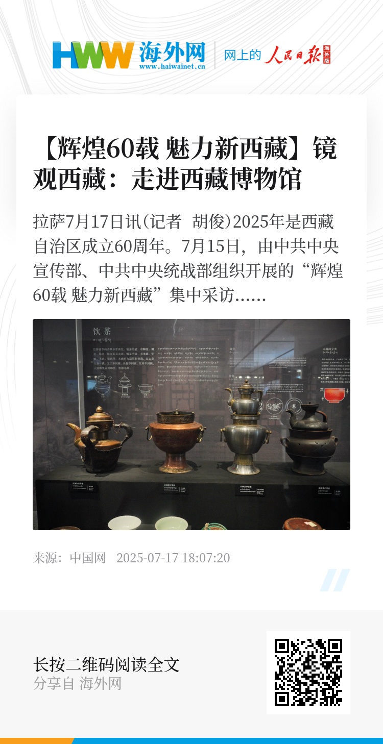 恰逢暑期,游人如织。人们走进西藏博物馆,通过一件件珍贵文物展示,深刻感受西藏和祖国一脉相承的历史渊源。人们购买文创产品,将西藏的故事带回家,也让更多人通过这些“会说话的文化符号”,读懂这片土地蕴含的智慧和温度。