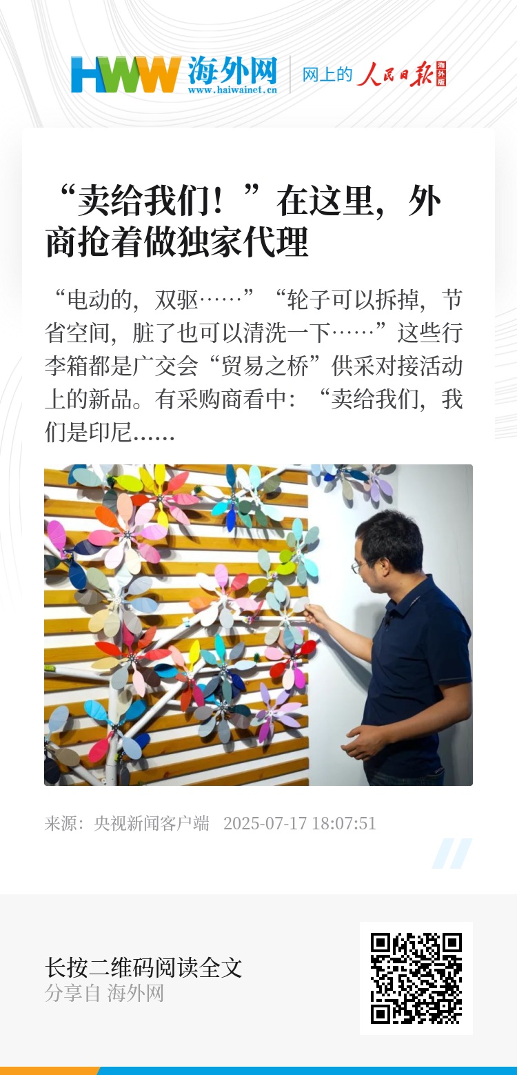 这些行李箱都是广交会“贸易之桥”供采对接活动上的新品。有采购商看中:“卖给我们,我们是印尼第一大零售集团,直接就上架。”