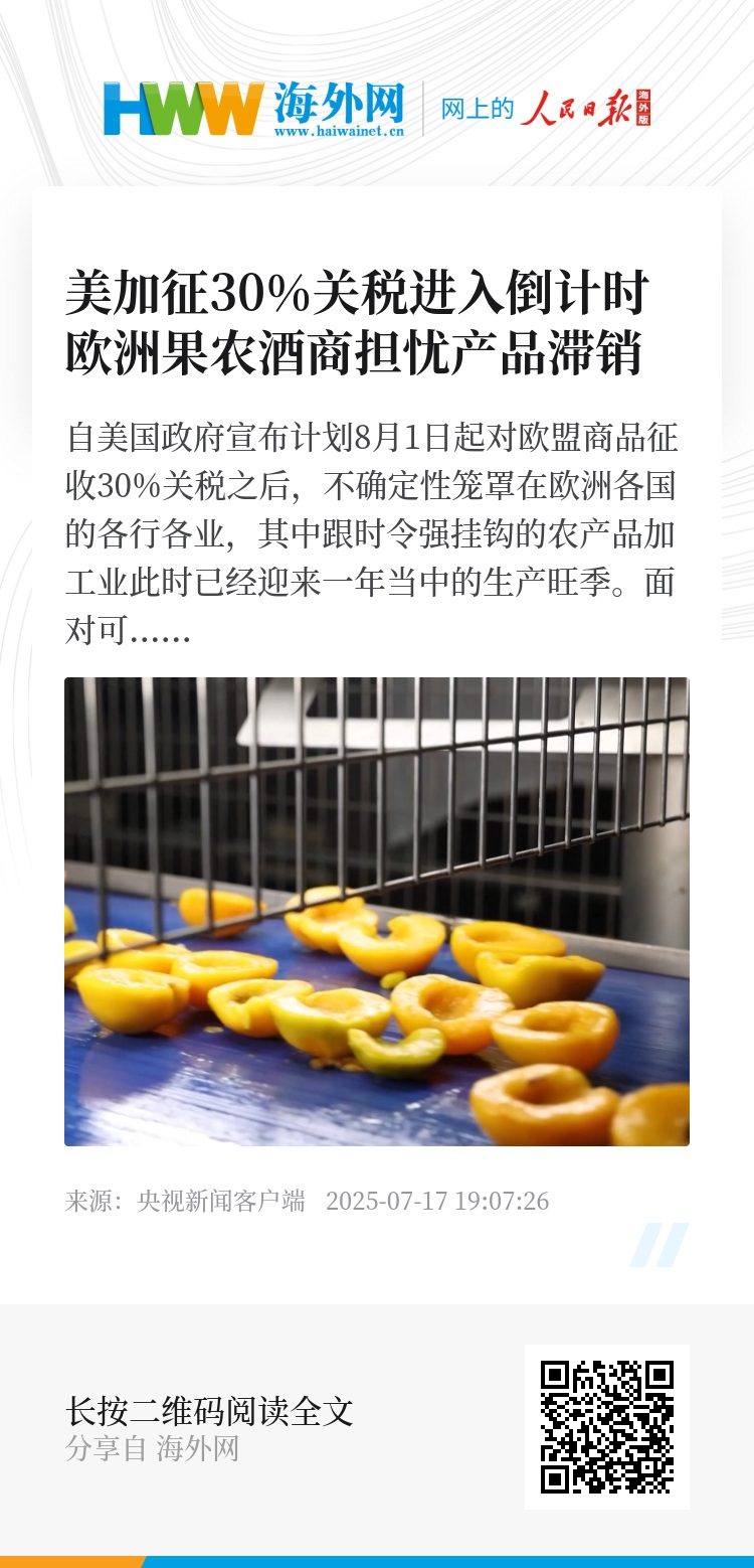 自美国政府宣布计划8月1日起对欧盟商品征收30%关税之后,不确定性笼罩在欧洲各国的各行各业,其中跟时令强挂钩的农产品加工业此时已经迎来一年当中的生产旺季。面对可能到来的高额关税,从业者们担心自家产品或将因此滞销。