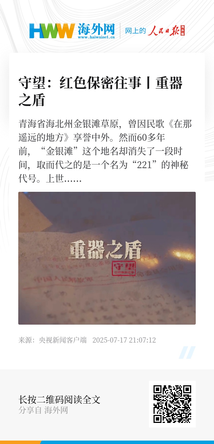 1995年5月,我国第一个核武器研制基地全面退役。如今,金银滩被誉为“中国原子城”,那些“隐姓埋名人”在这片草原上用生命打造的重器之盾,仍在时间的长河中熠熠发光。