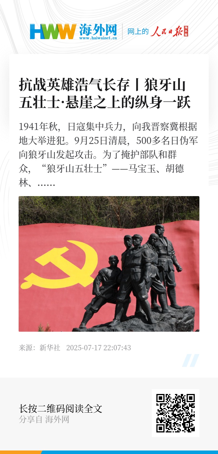 1941年秋,日寇集中兵力,向我晋察冀根据地大举进犯。9月25日清晨,500多名日伪军向狼牙山发起攻击。为了掩护部队和群众,“狼牙山五壮士”——马宝玉、胡德林、胡福才、葛振林、宋学义将日伪军引向峰顶绝路。
