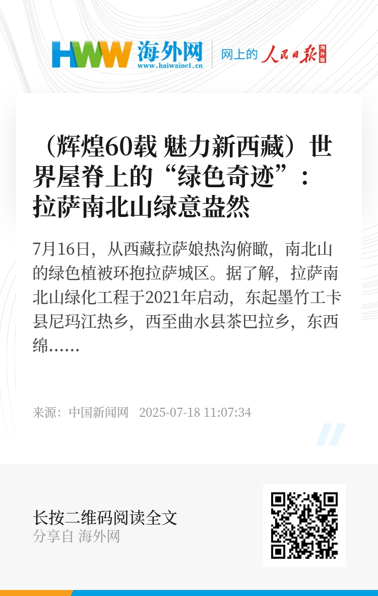 7月16日,从西藏拉萨娘热沟俯瞰,南北山的绿色植被环抱拉萨城区。据了解,拉萨南北山绿化工程于2021年启动,东起墨竹工卡县尼玛江热乡,西至曲水县茶巴拉乡,东西绵延近200公里,计划完成国土绿化面积206.72万亩,助力拉萨成为生态宜居的高原首府城市。中新社记者张祥毅 摄