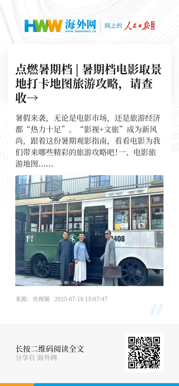 电影是一位特殊的导游,将城市景观电影故事相结合,赋予场景不一样的意义与内涵。电影不只拍摄诸多地标,还用独特的镜头语言挖掘那些常被忽略的纹理:方言里的烟火气、古建筑中的历史回响、寻常巷陌的戏剧性瞬间,让观众共情共感。光影流转,好的故事赋予了旅游景点更多魅力,这个夏天,不妨让心仪的电影成为你的旅行灵感,跟着电影去旅行。