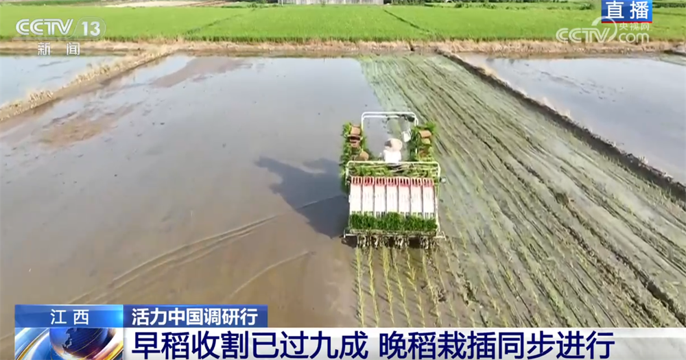 在现场可以看到,收割后的稻田经过旋耕机翻耕后就可以移栽下一茬晚稻。在育秧工厂,机械化流水线生产的秧盘整齐码放,早晚补水后就可以通过插秧机移栽到大田。目前高安市早稻收割已过九成,预计到25日可以全部完成。8月1日前,晚稻的栽插工作也将全部完成。