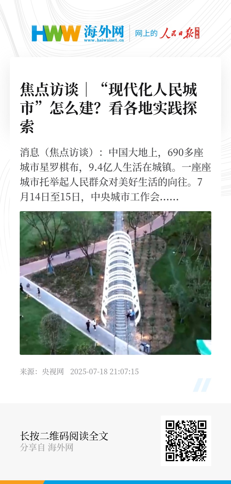 央视网消息(焦点访谈):中国大地上,690多座城市星罗棋布,9.4亿人生活在城镇。一座座城市托举起人民群众对美好生活的向往。7月14日至15日,中央城市工作会议在北京举行,习近平总书记出席会议并发表重要讲话,科学回答了做好新时代新征程城市工作的重大理论和实践问题,擘画了建设现代化人民城市的新蓝图。城市工作面临哪些新形势?做好城市工作的总体要求、重要原则、重点任务是什么?如何走出一条中国特色城市现代化新路子呢?
