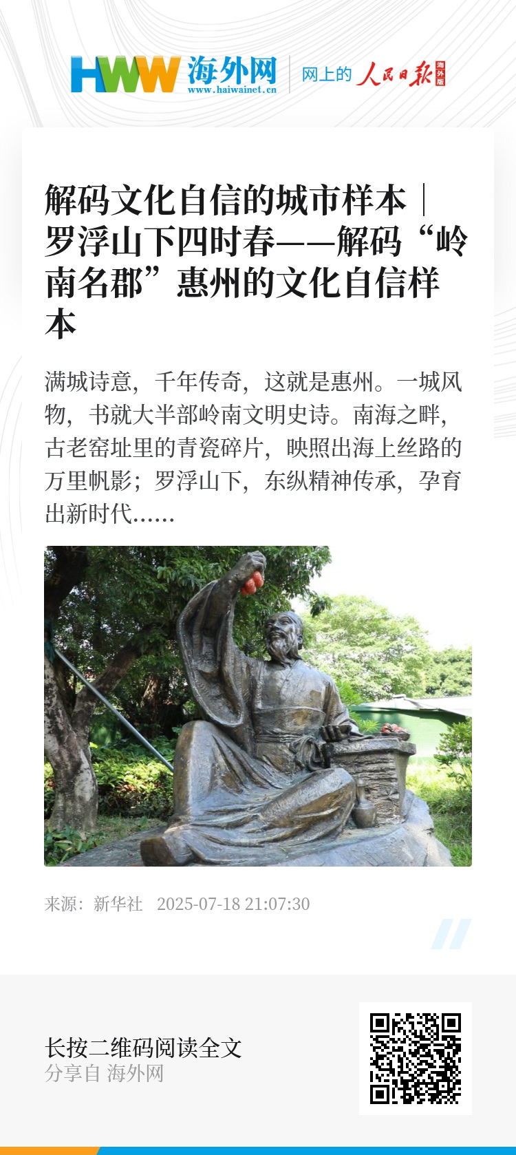 “罗浮山下四时春,卢橘杨梅次第新。”在红色基因中铸魂,于传统文脉中汲古,向湾区潮头处开新——惠州正以山海为卷,书写“岭南万户皆春色”的崭新华章。