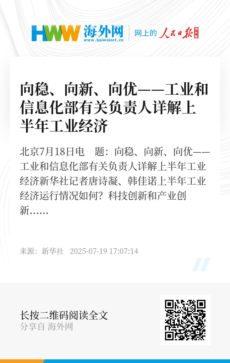 新华社北京7月18日电 题:向稳、向新、向优——工业和信息化部有关负责人详解上半年工业经济