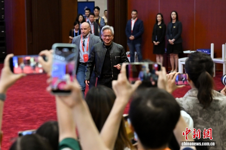 黄仁勋在第三届链博会上。中新社记者 赵文宇 摄