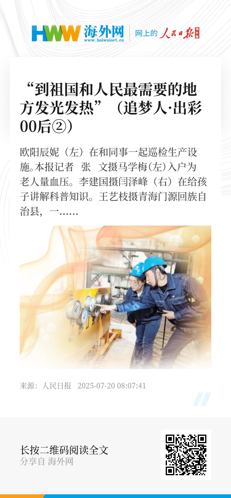 如今,在00后“老技工”欧阳辰妮和同事们的努力下,厂里的煤制油项目产品拓展到5大类21种。“西部这片热土值得奔赴,这里是挥洒青春的舞台,平凡的人也能在这里创造闪亮的成绩。”欧阳辰妮说,车间的一钉一铆、一钢一架,都将继续见证自己在工业生产领域挥洒青春的无悔人生。