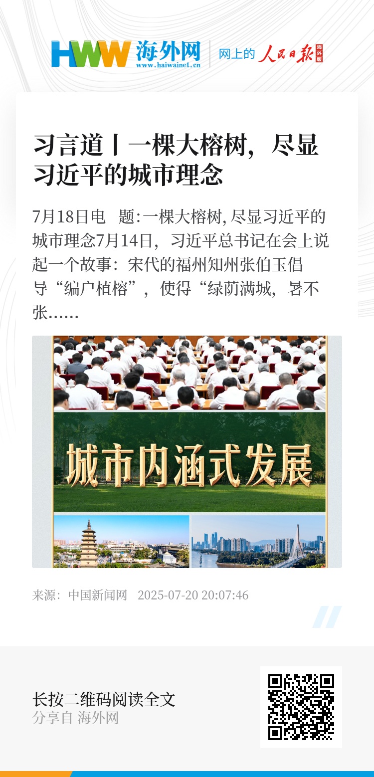 中新网7月18日电 题:一棵大榕树,尽显习近平的城市理念