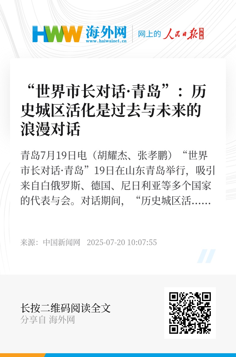 中新网青岛7月19日电(胡耀杰、张孝鹏)“世界市长对话·青岛”19日在山东青岛举行,吸引来自白俄罗斯、德国、尼日利亚等多个国家的代表与会。对话期间,“历史城区活化”成为热词,多国市长围绕“活化历史城区 开启文旅新章”议题展开探讨。与会代表认为,历史城区是城市文化记忆的重要载体,其活化利用是“过去与未来的浪漫对话”。